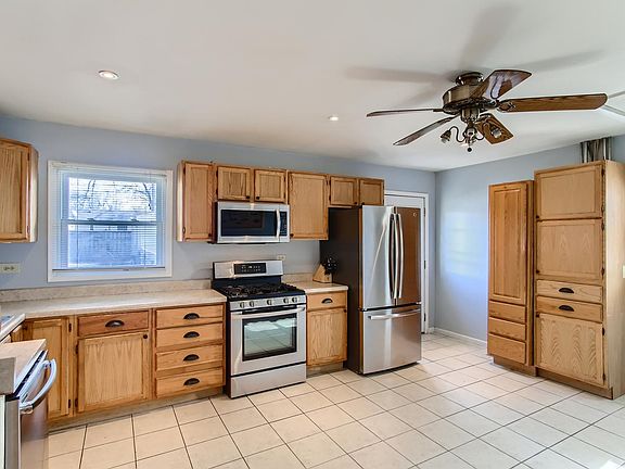 This charming ranch home should not be missed. Big spacious lot with privacy fence all around. Living room with laminated floors an foyer in entryway. Three bedrooms. Great kitchen with ceramic floors, ceiling fan. SS dishwasher under 4 years old. Water heater replaced in 2021. Vinyl siding plus above ground pool. Easy access to I355