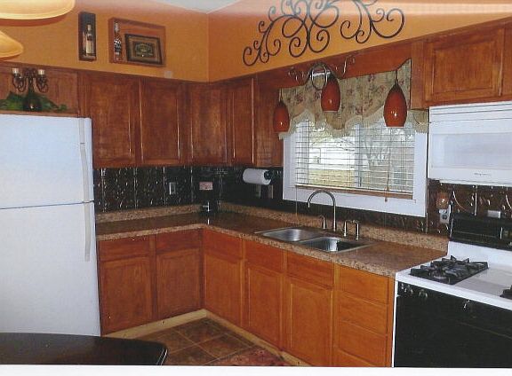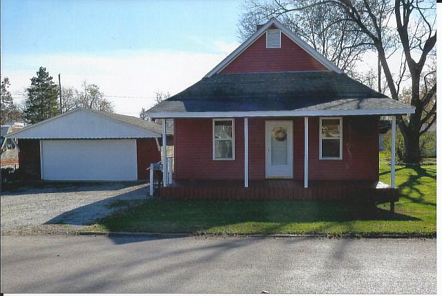 Newly redone. New kitchen cabinets & counter, vinyl flooring, bath w/deep soaking tub, furnace, central air, lighting, wiring, plumbing, water heater, insulation-25 bags, vinyl siding, windows, doors & garage door. 2 lots. 2 car garage. Chain link dog pen. Call Tracy, 597-5874 to show - Dog. Short notice possible. Please leave card.