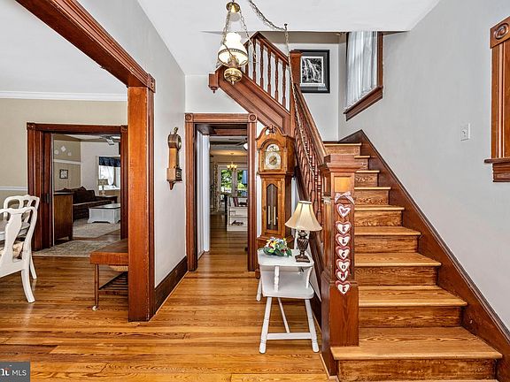 This charming home is the perfect blend of yesteryear and today. Upon entry, enjoy the sights of the original heartwood pine floors and banister railings that give a century old home its character. Beautifully renovated kitchen offers off white cabinetry, granite countertops, stainless steel appliances, a built-in microwave, and a huge island/breakfast bar with end bookshelves. Convenient main level full bath has been beautifully renovated and includes a shower stall with stone floor and tiled walls and a raised bowl vanity. Large dining room and spacious living room offers original heartwood pine flooring and many windows to let in lots of natural lighting. Upstairs there are 3 bedrooms and a renovated full bath. The finished attic provides a large 4th bedroom/recreation room, plus closet/storage areas. Outside you can relax in privacy and enjoy a meal on the large rear deck, roast smores at the firepit and swing in the back yard swing. Two car oversized detached garage with garage door opener plus an extended driveway for all your parking needs. There is storage space under the porch for additional exterior storage. Sit on the inviting wrap-around front porch and watch the sunrise or enjoy a good book. Beautiful landscaping with flowering bushes, trees and shrubs surround this wonderful home. Updates include: vinyl siding, replacement double hung windows, central A/C, composite decking, RING doorbell and surveillance system and 1 year Cinch/HMS Home Warranty. This homes location is in close proximity to Watkins Park with trails, ball fields, basketball, tennis courts, and playground and just minutes from historic downtown Mount Airy.