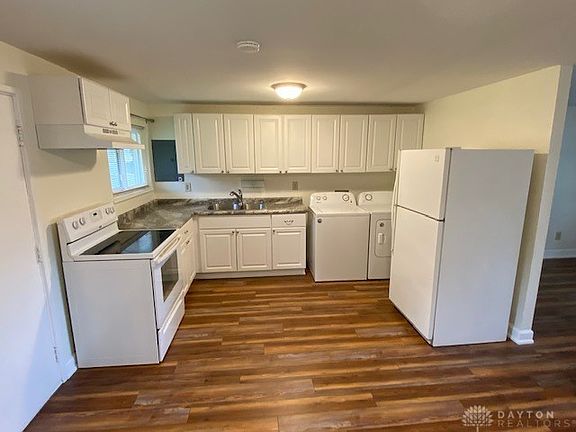 Nice brick ranch in super area of Kettering! Start here or retire here in this home within walking distance of Town and Country shops and Kroger super store! Home sits on a level fenced lot and is completely surrounded by a wood privacy fence! Extra wide driveway allows for plenty of off-street parking. Inside you will find beautiful laminate flooring throughout the living room, dining area, kitchen and hall. Updated hall bathroom. Kitchen comes with stove and frig along with washer and dryer. Gas heat and A/C that was just serviced. Attached one car garage along with opener. Do not delay on this terrific home in a highly desired area!
