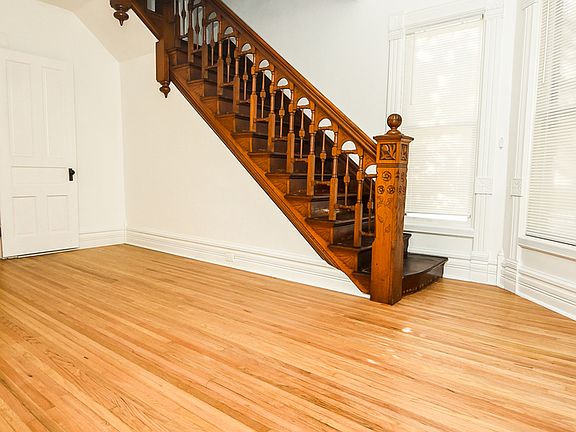 Do not miss out on this 5 bedroom, 2 bath home with 2.5 car detached garage. This home features a brand new kitchen with tons of cabinets and butcher block countertops. The main level also features a separate dining room, living room, den and entry way all with hard wood floors. Additionally the main floor has a master bedroom with attached full bath! The beautiful wooden staircase leads upstairs to 4 more bedrooms, a sun room and another full bath. High efficiency at its best with 2 furnaces and 2 central air units. CALL TODAY!
