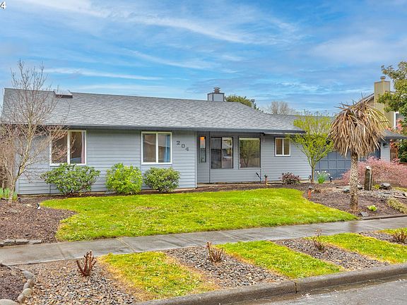 Located a mere 0.1 mi. from Antonia Crater Elementary and Chehalem Valley Middle School, this single-level home is ready for you. As you step onto the property, you will be greeted by a beautifully landscaped front lawn, with underground sprinkler system, and bubbling water feature. Kitchen recently remodeled with new cabinets, solid surface countertops, and GE appliances. The bay window overlooks the lush backyard, where two raised garden beds, covered patio, pond, and hot tub await. Enjoy this home with three bedroom, two full baths, and a dedicated laundry room. New roof installed in 2021. The entry, dining, and living room converge in an open floorplan with vaulted ceiling.