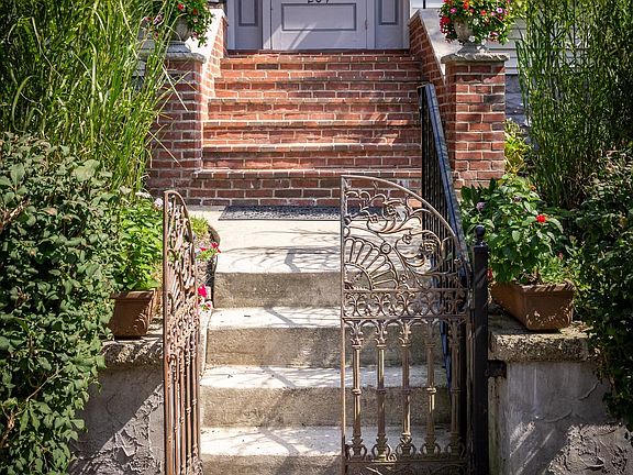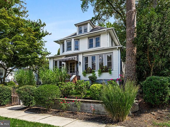 Collingswood Stunner set on a generous lot, almost double the land of what you'd expect to find so close to downtown! Set along East Madison Avenue (the unofficial start of the shops along Haddon) this large single family is only houses away from the views overlooking Cooper River at the famous "Robin Hood's Castle" landmark with stone steps leading you down for enjoyable river walks! The ornate front gate intentionally purchased for just the right fit, guides you to the newly rebuilt brick front steps. Mature landscaping, thoughtfully designed fenced-in backyard, and plenty of off-street Driveway parking plus a 2 car Garage with carriage house doors! This home features architectural details and sophisticated charm throughout each and every room beginning with the Enclosed wrap around front porch offering a Custom built-in entryway Bench with storage, designer tiled flooring, and is flooded with Sunlight. Flanked by stained glass sidelights, you'll enter into the spacious Living Room boasting gorgeous refinished Hardwood flooring with walnut in-lay, freshly painted walls and 9' ceilings. Detailed thick columns and crown molding lead into the Formal Dining room featuring a dramatic light fixture, original swinging door into the side Den and entry into the Updated galley Kitchen which offers white cabinetry, Granite countertops, Stainless steel Appliances and offers access to the backyard. The main floor also holds a beautiful Full Bathroom and a Den/office with oversized safe included. Beautiful stairwell with dual stained glass windows at the landing takes you to the remodeled 2nd floor. This level, once a classic 4 square, now features 3 Bedrooms with a Gorgeous Full Bathroom which hosts 2 pedestal sinks, jetted tub, custom moldings, and an Original stained glass Door found in the basement now recessed as a custom pocket door! The Primary Bedroom retreat was expanded and offers brazilian cherry floors, two closets and a large sitting/dressing room. Bedrooms 2 and 3 are found on this level, and Bedroom 4 is located on the 3rd level offering a more private space with dormer accents and carpeting. Not to be missed - the Basement has been wonderfully split into a storage/laundry area and a Finished family room conditioned with heat and air, which features Luxury Vinyl Tile flooring, built-in shelving with an electric Fireplace, and offers outside access to the side yard. All of this - and the sellers are including a 1 year HSA home warranty with roof leak protection. Welcome Home!
