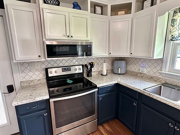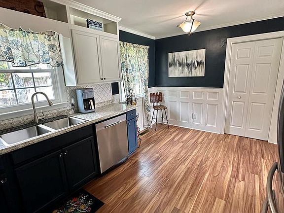 This cozy 3 bedroom/1.5 bath brick home is cute as can be! It features a nice family room, eat-in kitchen and laundry room. The kitchen was updated about 4 1/2 years ago and has nice SS appliances and LVP flooring. The range, refrigerator, dishwasher, microwave and Washer/Dryer all convey. The primary bedroom has a private 1/2 bath and the other two bedrooms share a nearby full bath. There are hardwood floors in several rooms. Outside you'll find a screened porch, rear patio area, fenced back yard and a nice storage building with rollup door. This home has many recent updates including a new HVAC unit in 2019, new vinyl windows about 5 years ago and the roof shingles were just replaced in July 2024. This adorable, well maintained home is move in ready and waiting for a new family.