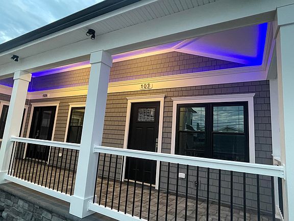 204 E Primrose was completely renovated in 2022-2023 to year-round condo units in the middle of Wildwood Crest. Walking distance to the beach, bay, bike path, and more! Unit 105 is a first floor, 2 bedroom unit with a full kitchen! You are welcomed by a brand-new building with all new lit pavers, exterior lighting, and professional landscaping, and a courtyard entrance. Inside is an upgraded galley style kitchen, a stand up shower with glass doors with brushed nickel finishes, and the upgraded trim package. This property also consists of soft close cabinets, a bluetooth fan in the bathroom, a washer/dryer, leaded glass entry door, sparkling white quartz countertops, oversized case molding, extra deep custom window sills, and upgraded lighting. The common area features storage, 2 outdoor tiled showers, and a climate-controlled storage room with on demand hot water systems for all units!