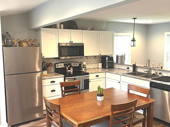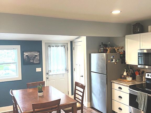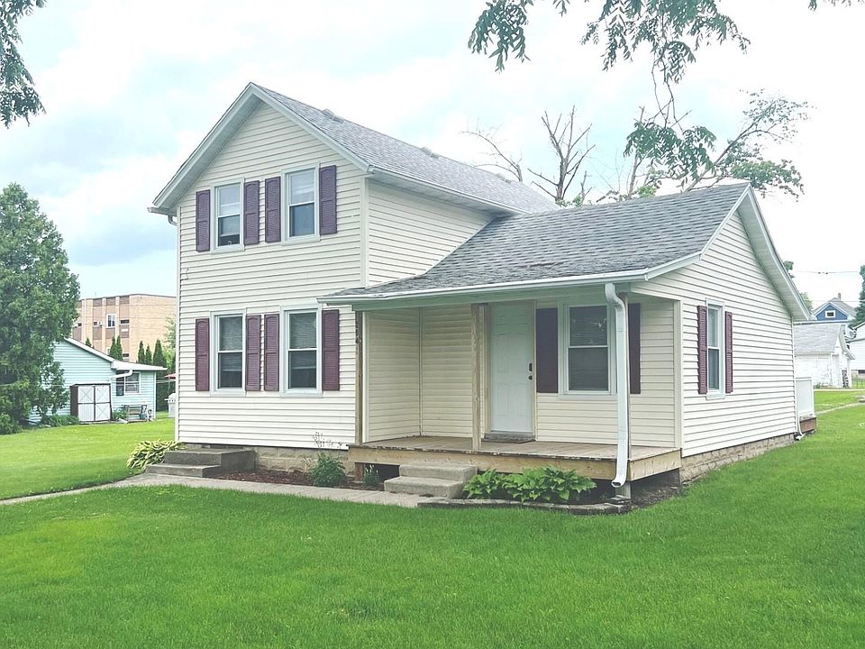 Updated 1.5 story home with 2 bedrooms, 1.5 baths, eat-in kitchen with breakfast bar and door leading to the back deck overlooking the spacious backyard, living room, and 2nd floor laundry. Updates include: 2017-Gas Forced Air Furnace, 2019-Roof, Central Air, New Plumbing, Kitchen remodeled, 2022-New Covered Front Porch, 2023-Water Softener.