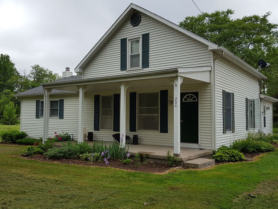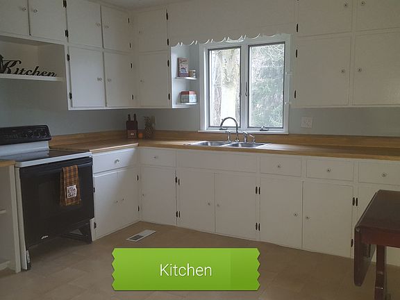 4 bedroom home with 1 1/2 bath, 2 car garage, large kitchen, 2 attic spaces. Feels like you are in the country!