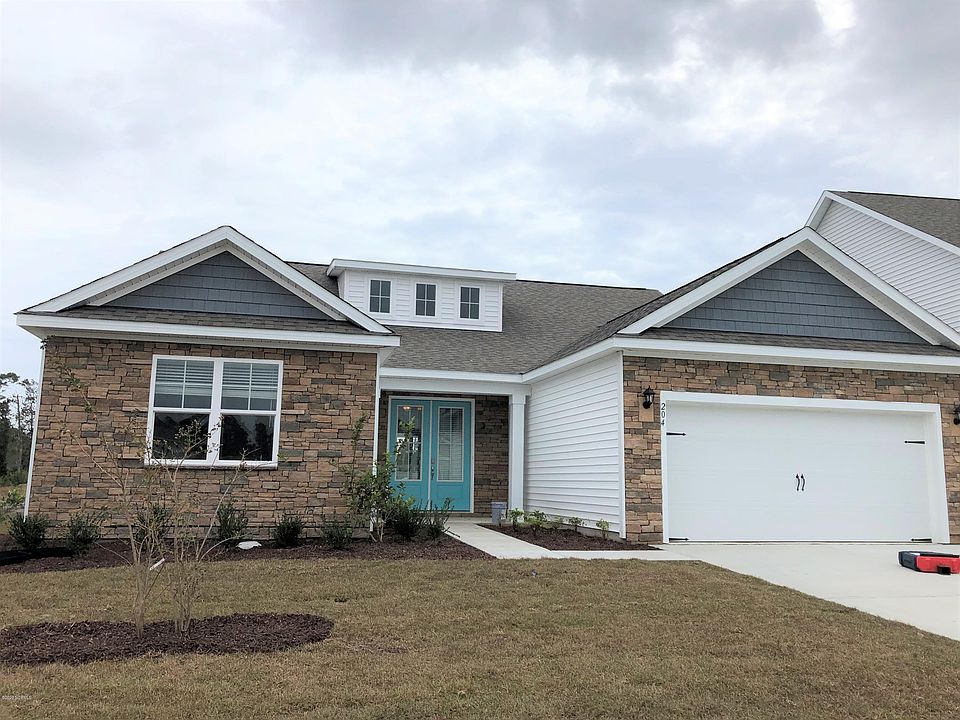 Surf City's newest community, Waterside, is now Selling!!! Within walking distance to local eateries shopping and the island. The Cumberland plan is back! This awe-inspiring home has nearly 2200 on a single level. With a bold French door leading into the foyer the 11-foot ceilings will welcome you into your new home. The open floorplan and 16x10 covered rear porch will make this the perfect home for having after-beach get-togethers. Features include a large gourmet kitchen with 36'' staggered cabinets and crown molding, granite, tile backsplash, walk-in pantry, and stainless-steel appliances in kitchen and an adjoining eat-in kitchen with a separate formal dining room. There's also a large living room with a gas fireplace. The owner's suite is privately tucked on the back of the house and the front two bedrooms share a bathroom with a dual vanity. Luxury Vinyl Plank flooring is included in the main living area, giving you a wood-like look with the durability to handle all your beach days and the Coastal trim package will remind you that you're just minutes from the island. The owner's suite features a step-in 5-foot shower, soaker tub and dual vanity. Welcome home!