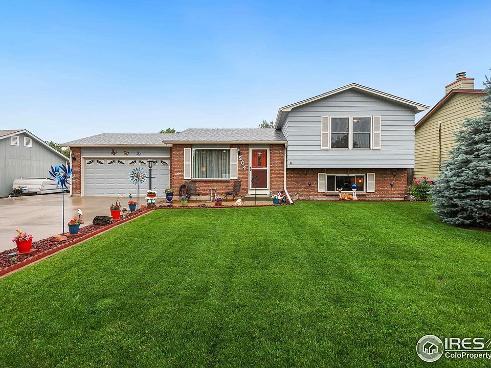 No HOA and Metro tax! Charming Split level/Tri level home nestled in North Woods Park. Large yards, RV pad/w 35 amp plug in, 2 storage sheds, New roof with gutter filters, Newer stove and refrigerator, new carpet, patio awning and a portable A/C. Plus a cozy gas fireplace in the family room. Double and triple pane windows. Buyer to verify measurements.
