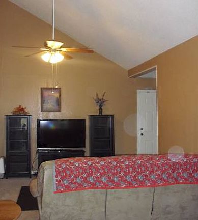 Unique and open floor plan with CONCRETE construction and tile roof. All electric/low utilities. Large private backyard with workshop and patio. All appliances including washer and dryer. Vaulted ceilings in every room.