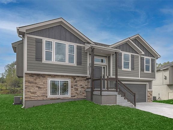 Such a Beautiful Home! This home has a very open and bright layout. This home features hardwood floors, tile floors, LVP, carpeted floors, vaulted ceilings, fireplace, huge country kitchen with custom cabinets, pantry and quartz counter tops. You will love the gorgeous stone work on the front of the home. This plan has 3 large bedrooms on the main level! The huge lower level is finished with a walk-out family room, fourth bedroom and full bath. This beautiful home is built with true quality that you just don't see in some homes. Located on a larger lot in Raymore very near parks & great schools!