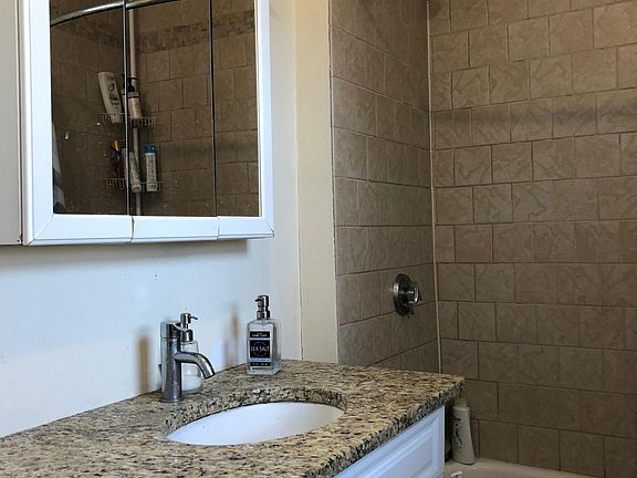 2nd & 3rd floors of a 2-family. Large LR and eat-in kitchen with stainless steel appliances. Huge fridge. 2nd floor has 2 standard size BR's, a smaller one all with closets and a large front porch bedroom which has a lot of room but is long and narrow. Upstairs has a huge single room typically used as a bedroom with sloped ceilings but 2 skylights, 3 windows. 2 full bathrooms.