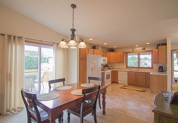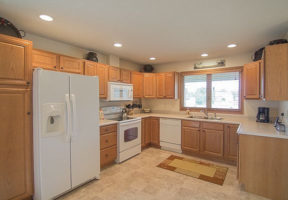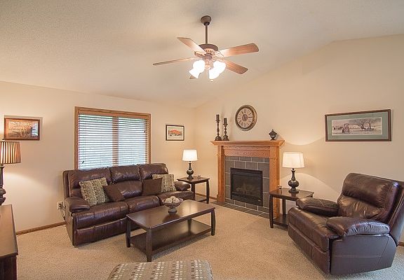 Beautiful, well cared for zero lot. Main floor features an open floor plan/ great room, with U shape kitchen including oak cabinets, vaulted ceiling in living room with fireplace and dining area with patio doors to deck. Main floor master bedroom features a bath with double sinks and walk in closet. The LL features a family room with built in desk, snack bar and cupboards with refrigerator under counter top. A rec area that measures an additional 20 x 11, a third bedroom, bathroom, and storage room.