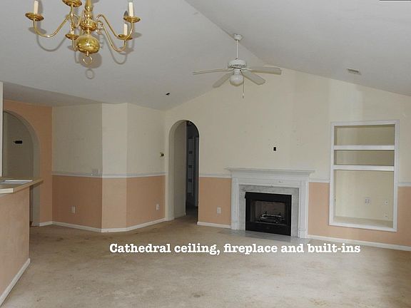 - Living Room: Fireplace, Ceilings-Cathedral, Entertainment Center, Ceiling Fan