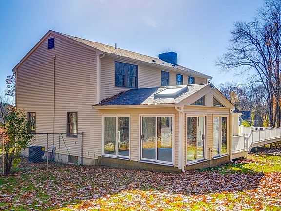 Amazing house with over an acre and a half of endless privacy! This gorgeous and newly renovated home has updates from top to bottom. The exterior features a fantastic 65’ wrap-around composite deck for unlimited entertaining, new siding and a new roof! Interior features include a HUGE 27 ’x 23’ Great Room featuring exposed wood beams, a floor-to-ceiling stone fireplace and 6 skylights for an abundence of natural light. The kitchen hosts a granite island w/ new counters/backsplash, shaker cabinets & new stainless appliances. A second living room w/ wet bar sits off the kitchen & flows into a relaxing four-season room w/ large windows for peaceful views of quiet woods, stone walls & passing wildlife! Upstairs left, the primary bedroom surprises you w/ a fireplace, and offers a walk in closet & tiled full bath. To the right, 3 more bedrms & full bath. Bonus of the massive basement is a third garage door for ATVs/bikes/toys,etc, newer boiler, newer waterheater!