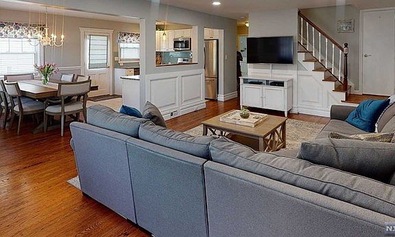 Renovated cape offering all large rooms. New Kitchen and bath. New Electrical Service. First floor offers open floor plan: Living Room, Dining Room, Kitchen and Bath, 2 Bedrooms, beautiful hardwood floors throughout. Second Floor offers 1 finished bedroom and second room ready to be finished into living space or master suite. Basement is clean with new ceramic tiled floor. Attached garage, Fenced yard. Great opportunity to own a renovated home with low taxes. Move right in!