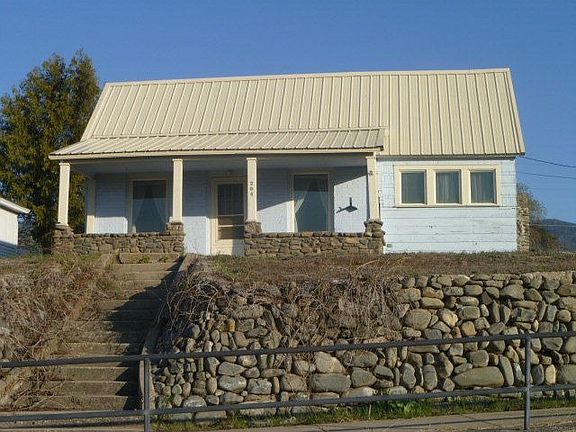 An older home with a cute floor plan. The location is excellent sitting atop the famous rock wall in the City of Salmon.Excellent views of the mountains and the city of Salmon. A covered front porch to sit and enjoy the views. The home needs some work but is one of those with some TLC could be adorable. The home has a new metal roof and has recently been painted.