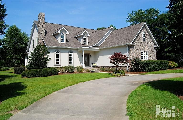 NEW PRICE! Located in popular Olde Pointe, this stunning pond & golf course view, custom home is over 3650 s/f & perfectly situated on a .86 manicured lot. Features include impressive stonework inside and out, beautiful wood floors, formal dining room with tray ceiling, two fireplaces, open kitchen with rich cherry cabinets and Quartz countertops, huge laundry room with storage, large master suite with two walk-in closets, separate vanities, large garden tub and oversized tiled shower. Upstairs, you'll find a loft area with built-ins, a spacious bedroom with private bath, two additional bedrooms, office and a bonus room. Outside, you'll love the garden area, stone covered porch with outdoor kitchen, circular driveway and THREE car, side-loading garage. Old Pointe offers Intracoastal WATERWAY access, golf, tennis and pool for a low HOA fee. Coveted Topsail school district! This immaculate, unique home must be seen to be appreciated - call today for an appointment