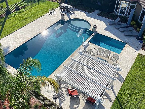 5 bedroom 5 full bathroom 3 car garage home. In addition to the bedrooms home boasts a large office with its own kitchenette, screened lanai, which overlooks the pool and 14th fairway, and a large bonus room located above the garage. Both the office and bonus room have closets, thus home could be used as a 6 bedroom home with an office or a 7 bedroom home. Family room contains gas fireplace, built-in bookcases, a wet-bar with ice maker, built in wine fridge. The adjacent Kitchen is equipped with separate Thermador fridge and freezer, 9 burner gas range, dual Miele dishwashers, wall oven, built-in microwave, stainless farmhouse sink, separate pantry and quartz countertops. Walkout kitchen to screened lanai equipped with large wall hung TV, built in surround speakers, grill island with built-in gas grill, hood and 3 drawer fridge. Walkout lanai to large fenced backyard oasis with 20’ by 40’ pool with gas fire-bowls, 9’ by 14’ hot tub with swim jet, and large gas fire-pit. Backyard also boasts a 14’ by 14’ poolside pergola and has expansive views of the 14th fairway. Wine lovers will enjoy the 8’ by 9’ custom built-in wine closet with large glass doors. 1st Floor Master bedroom contains shiplap throughout, built-in fireplace and massive built-in his and her dressers. other notable features: -spray foam insulation in attic -3 zone hvac system complete with Trane clean effects air cleaners, Rheme Halo UV lights, built-in dehumidifier and WiFi thermostats -2 Rinnai tankless water heaters -Gladiator garage organization system and -SharkCoating” on garage floor -Dual Aquasana whole house water filters with water softener and UV light -7 hardwired exterior Ring spotlight Cams -Plantation shutters throughout -Pool and Hot-tub installed in 2019 Home was fully renovated in 2012 and 85% of home was renovated again in 2019