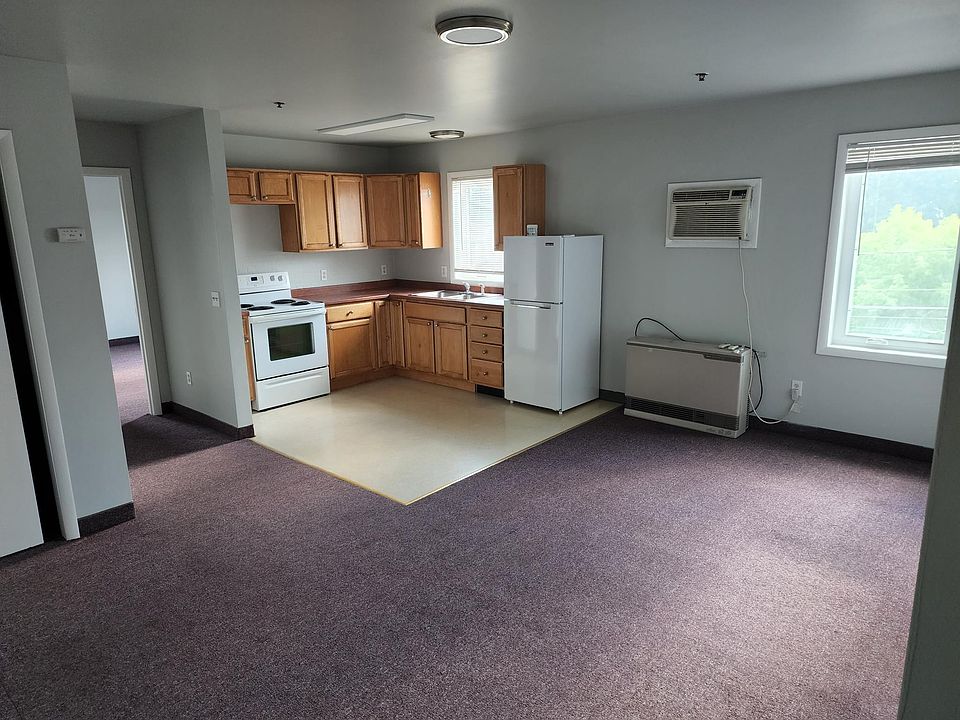 Freshly painted large 2-bedroom apartment with air conditioning. This spacious apartment is carpeted and has lots of closets. There is an open kitchen with a new refrigerator, built in microwave and a separate dining area. This apartment is in a secure building that is close to shopping, restaurants, area hospitals and SUNY Binghamton. There is an on-site laundry facility and off -street parking. Owner pays for water and trash removal. Tenant is responsible for all other utilities. No smoking and no pets allowed.