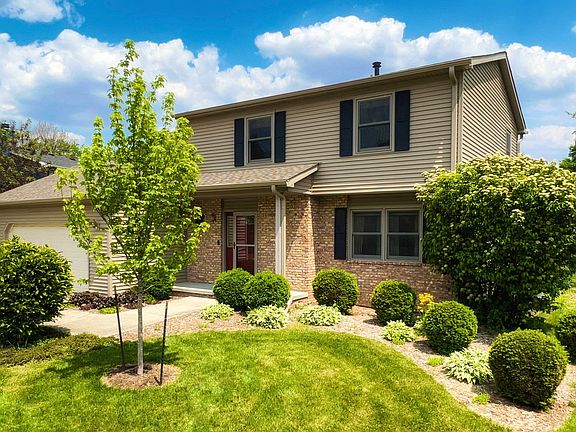 Beautifully cared for traditional two-story home in Evergreen stands out above the rest! This sprawling original owner home has been lovingly cared for right from the start with terrific improvements inside and out including NEW Roof/Gutters/Siding (2019), HVAC (2012), Water Heater (2023) and quality replacement windows and custom blinds throughout! Pass through the covered front porch and follow the hardwoods floors to the heart of this home, a spacious kitchen boasting an abundance of rich dark wood cabinetry, Corian Counters, convenient pantry, breakfast bar and stainless appliances. Main floor half bath perfect for guests and formal dining room off the kitchen allows extra space for entertaining. Generous table space overlooks the family room with canned lights and gorgeous built-ins flanking the stately brick fireplace. The front room features pocket doors for privacy and offers the perfect flex space for an office, hobbies or music room. Owners continue to improve the function and flow of this home with a stunning all seasons sunroom addition, finished with the gorgeous hardwoods, vaulted ceilings and a wall of windows overlooking the raised deck and oversized backyard. Upstairs you'll find the spacious primary suite with double closets, private balcony and attached on-suite featuring tile floors, tub/shower combo, tons of storage and double sinks. Three additional bedrooms on the second floor outfitted with ceiling fans and neutral carpet provide plenty of additional space for guests or office. The third bedroom suite also offers private vanity and sink. The upstairs laundry closet is a smart addition to this home located just off the full guest bath with an additional tub/shower combo and pocket door for privacy. Downstairs, the partially finished basement offers additional flex space for a theater room, bonus hobby or office space plus an unfinished utility area with plenty of storage, HVAC, water heater, sump pump and radon system. Lower level workshop could also easily be converted back to additional storage if desired. The attached two-car garage is just as tidy as the interior of this home! Don't miss the wonderfully established neighborhood of Evergreen located in East Bloomington, and all this special home has to offer.
