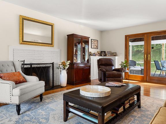 Refined hardwood floors throughout add warmth and character, and the interior has been recently painted for a fresh, inviting feel. The living room boasts a lovely wood-burning fireplace and convenient sliders that lead out to the renovated three-season screened-in porch, complete with skylights and an adjacent deck perfect for enjoying your morning coffee or entertaining guests.