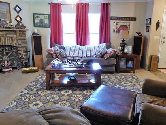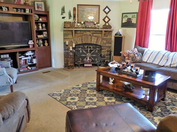 Newer Clayton home on 2 acres with new heat pump! Split bedroom layout with a spacious master suite featuring an oversized walk-in closet plus amazing en suite bath with electric fireplace, double vanities, separate shower, soaking tub, and water closet. 3 large bedrooms, 2 baths, Perfect covered front porch plus entertainment center built-in and wood burning fireplace in the living room! Private shared water line on private road. 2100 finished square feet on all one level including laundry for just $105,000!