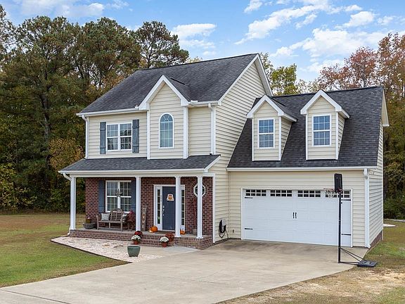 Fantastic home on a 1 acre cul-de-sac lot, 5 mins to Downtown Benson, 7 mins to I-95 & 30 mins to Downtown Raleigh! On the main floor, you will enjoy a formal DR, an eat in kitchen w/ pantry, freshly painted 1/2 bath & family room w/ gas log fireplace. Upstairs, you will be delighted by the large primary bedroom w/ spacious WIC & large bath w/ double vanity, separate garden tub & tiled shower. 2 addt'l bedrooms, bath, laundry + a large bonus room, are all located upstairs. An impressive 26x23, unfinished, 3rd floor walk up attic adds tons of storage space. HVAC is 2 & 3 years young (2 units). Enjoy the outdoors w/ a brand new deck, fire pit area and shed.