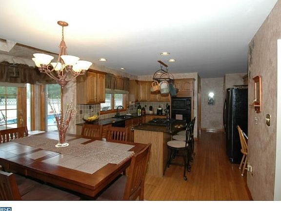 Exquisite brick front Virginian model located in Saddle Ridge, Springfield Township, Burlington County. This 4 BR, 2.5 BA colonial was built by Toll Brothers and offers many wonderful features. The 1st floor has HW flooring, 2 story foyer w/ updated lighting fixtures, formal LR/DR, oversized FR w/ French doors opening into LR and wet bar for entertaining. The gourmet kitchen offers a breakfast area, Center Island, granite countertops & sliding doors leading to outdoor deck. The 2nd floor houses all bedrooms including master suite, all with wood flooring. The master suite has a sitting room, walk-in closet plus full bath with soaking tub. The full basement has been finished w/ Game room, office, exercise area & craft room. We offer Lots of storage with extra shelving in basement & 2 attached car garage. The rear yard has a private deck with above pool and plenty of room to enjoy on 1.36 acre lot. You would not be disappointed in the space or condition of this move in home.