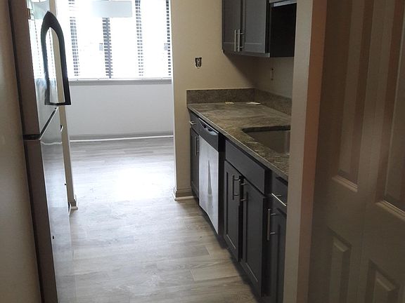Our one bedroom has a unique layout that's a must see! It boasts a walk in closet, pantry, additional storage, vinyl hardwood throughout, carpet in the bedrooms, granite countertops, and a gated community. 6 months available for additional fee