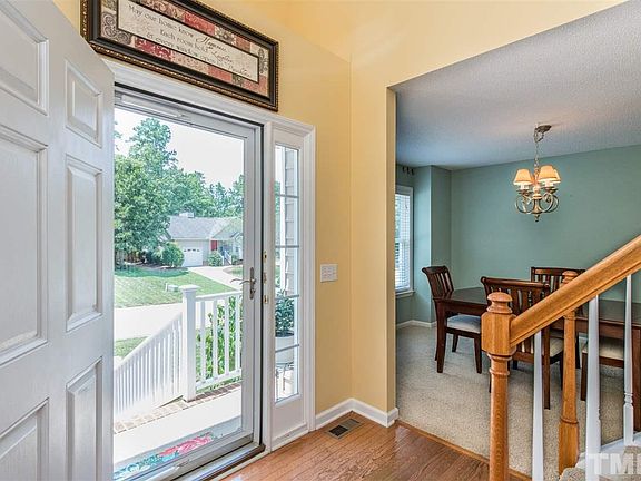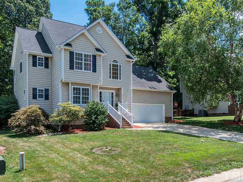 Very rare Somerset Farm opportunity! Spacious private setting on a cul-de-sac! Enjoy morning sunrises and shaded late afternoons on your deck overlooking the fenced wooded lot! Bright two-story foyer, family room with built ins! Sunny kitchen w/ walk-in pantry, & gas cktp. East-facing mstr bdrm, mstr bath w/ separate garden tub & shower. 21x14 bonus rm, walk-in attic storage. Big Garage! New heat 2019. Neighd pool, tennis ct., playground, neighd trail access to Sugg Farm, Parrish Womble & Bass Lake Park!