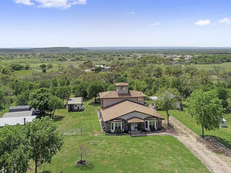 Wonderful spot on 5 acres just north of Marble Falls. Great views that could be improved upon with a little tree trimming. Large, private back yard with a chicken "mansion" built with every functional detail in mind and fenced-in garden area. Owner added a nice new wood deck spanning the backside of the house that's perfect for entertaining and taking in the beautiful sunsets. Workshop has two large roll up doors and extra room for storage. Roof is less than 5 years old.