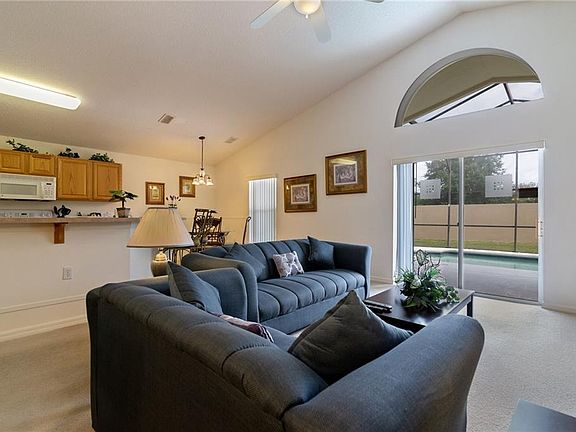 Such a stunning and well maintained property which could be owned as a residence or a vacation home. Comes fully furnished down to the very last teaspoon to a very high standard. As you step in through the front door you are welcomed by a bright and airy feel with open plan layout. A huge sunny pool deck area and a heated pool with an external shower along with an deck accessible bathroom with toilet and sink. The gorgeous living space is tastefully furnished and each bedroom is carpeted and furnished with style and comfort. The kitchen is open to the family room and has a spacious breakfast area as well as a comfortable breakfast bar. The master suite is spacious and accommodates a king bed with ease, master bath is large and boasts double closets. This home is also equipped with a second bedroom with en suite and another 2 bedrooms that share a "Jack and Jill" bath. The gated community is just minutes from Disney, shopping, restaurants and many more attractions. Don't miss this one! Put it on your viewing list today.