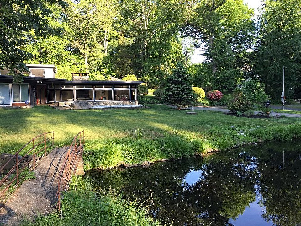 Live like you are on vacation all year round! Serenity surrounds this 4 BR 3.5 BA unique Frank Lloyd Wright inspired ranch set on a quiet tranquil property. Fall in love with the views from many rooms in this home. The LR/DR has floor to ceiling windows, wood burning FP and parquet flooring. There is another FP in the updated den where you also have access on to the private back yard deck. The den also has recessed lighting and a staircase leading to the large updated 2nd floor family room. The FR has beautiful Brazilian teak floors, floor to ceiling windows, recessed lighting, quartzite fireplace, private entrance and a view to die for. Back downstairs are 4 bedrooms all with Brazilian teak floors except the master. The master BR has wall to wall carpeting, a beautifully updated 4 piece wash room with a roman tub and heated floors, as well as a separate dressing room. There is an attached 3 car garage and updated mud room. Newer septic tank and Invisible dog fence among the many upgrades to this spectacular home! So much to offer!