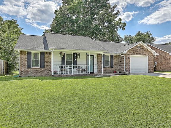 No HOA! Move-in ready! Located in the well-established Briddleford Ridge. As you approach you will notice the welcoming front porch and an extra parking pad. Upon entering you will notice the new lvp flooring throughout. The family room has a wood burning fireplace and cathedral ceiling with a ceiling fan. The eat-in kitchen offers a smooth top range, built-in microwave and dishwasher as well as above cabinet display area and a pantry. The french doors in the dining area provides lots of natural light. The primary bedroom has dual closets and a beautiful ceiling fan. The primary bathroom has an updated vanity and stand-up shower with grab bars. You will also find two additional bedrooms with ceiling fans. The hall bathroom has a tub/shower combo. The laundry room is conveniently located located just off the kitchen and leads to the garage. The fenced backyard is great for family pets. The patio is perfect for outdoor entertaining and the mature trees will provide a nice shade. Other features include roof replaced Oct 31, 2017, hvac in 2016, water heater in 2016, has a drainage in the backyard. Flood zone is minimal annual expense at $300. The location is just amazing! Walking distance to schools, restaurants and shopping. Just minutes to Goose Creek, Summerville and Ladson. The convenient access to I-26 makes a quick drive to Volvo as well as the airport, downtown Charleston and the beaches!