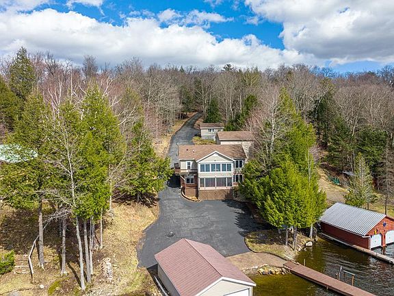 Access 30 miles of waterways from your very own boathouse, docks and launch on Lake Flower! This unique property features two immaculately maintained identical 2 bedroom/1 bath residences with porches overlooking the water, as well as a heated garage with spacious 2nd story rec room, a separate bunk cabin with full bath, and a two-slip boat house with electric garage doors. Located just outside the village limits with a secluded treehouse feel, this property is still close to shopping, dining and area amenities and has an excellent rental history. Sold furnished just in time for your summer enjoyment!