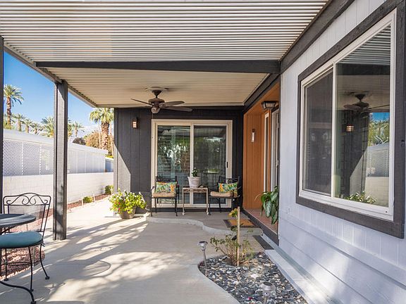 Originally built as a weekend getaway resort for movie stars, The Colony offers first-class amenities and stunning mountain views. Live the life of luxury in southern California - all at a price you can afford. The Colony features an array of paramount accommodations and conveniences to suit your lifestyle. The resort-style swimming pool and multi-million-dollar clubhouse are notable resident favorites. Turnkey furnished. This immaculately cared for home features double paned tinted windows throughout, custom shutters and window covering, exterior and interior recently painted, custom wallpaper adds unique style to this beautiful home, ceiling fans in every room. The large kitchen with oversized island, Corian counters and extra storage and newer appliances including the washer & dryer. This home is great for entertaining with adjoining dining area and family rooms bringing the oversized rooms together for that great room feel. Something for everyone is the attached large bonus/craft/man-cave room with its own wall unit A/C & ceiling fans. Wait until you see this very generous backyard with covered patio with breathtaking mountain views and built in BBQ. The front courtyard is perfect for enjoying morning coffee and the back patio is big enough to host a BBQ with your friends and family and then head over to the pool that's just steps away from the amazing property. This is NOT Indian lease land, Family community and under rent control. Community CHOA $30.00 annually