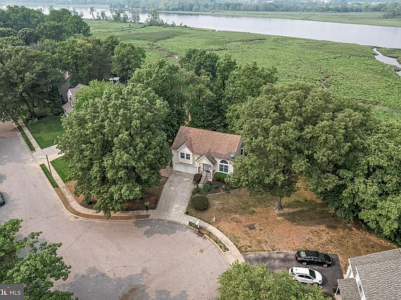 Looking for waterfront property? LOOK No further! Beautiful views of the Rancocas Creek right from your deck... enjoy the gorgeous sunsets that you can see everyday! This contemporary layout offers 4 bedrooms 2.5 baths. On the main floor is an open 2 story foyer with hardwood flooring, crown molding and chanticleer and the living room has a stunning 2 story ceiling, newer laminate flooring and large front window for great natural lighting. Upstairs there is a eat-in kitchen with granite countertops and a gas range, dining room with hardwood floors, chair rail and views of the water. The owner's suite is spacious with a nice walk in closet, hardwood floors and a private bathroom with a jacuzzi tub. Two additional bedrooms and a hall bathroom complete the upstairs. On the lower level there is a large family room with a gas fireplace, bookshelves and a sliding glass door to the yard, a half bathroom and another bedroom or bonus room for office, playroom or whatever you need. The washer and dryer are in the closet in this room. Access to the garage and also the basement are on this level too both offer you plenty of storage space. Pavers run along the side of the house to the back yard. Two car attached garage with inside access and a concrete driveway for 4 car parking. One year home warranty included. Excellent cul de sac location plus easy access to the bridge and several major highways for an easy commute.