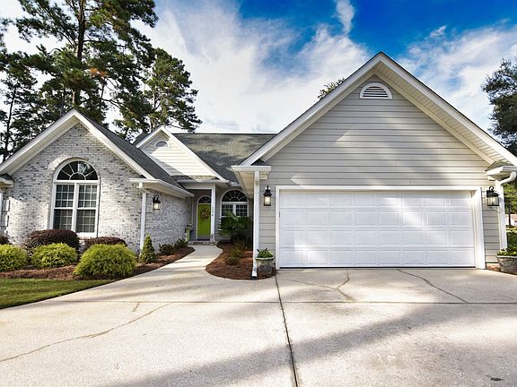 ON THE GOLF COURSE WITH A PRIVATE POOL IN WEDGEFIELD PLANTATION - Welcome to an elegant 3-bedroom, 3-bathroom sanctuary, where modern refinement meets functionality. On the first floor, two spacious suites each offer their private baths, with the primary suite boasting a luxurious jetted tub and walk-in shower. Natural light dances through the open-concept layout, enhanced by vaulted ceilings, skylights, and a heartwarming dual-sided fireplace. The living, dining, and sunroom areas seamlessly converge, leading to a 2020-updated kitchen adorned with quartz countertops and state-of-the-art stainless appliances. The richness of hickory hardwood on the first floor gives way to the cozy carpeted loft-bedroom on the second, currently serving as a tranquil office retreat. --------- Stepping outdoors, the crown jewel awaits: a majestic 16x32 in-ground pool. Protected within a grand screen enclosure, its surrounding deck promises safety and relaxation, especially beneath the retractable shade awning. A picturesque circular driveway winds its way past mature, blossoming gardens. Additional perks include easy-to-clean tilt windows, ambient light dimmers, a roomy two-car garage with an adjoining heated/cooled workshop, efficient lawn irrigation, and dual HVAC systems. Nestled against the backdrop of the scenic #2-hole green, this home is a harmonious blend of luxury and peace.