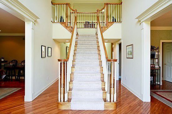 4 BR, 4.1 bath brick Colonial features granite center isle kitchen, formal LR & DR w/ moldings, FR with stone gas FP & skylights, 1st floor office w/ custom built-in desk, sunroom & 2 story foyer.