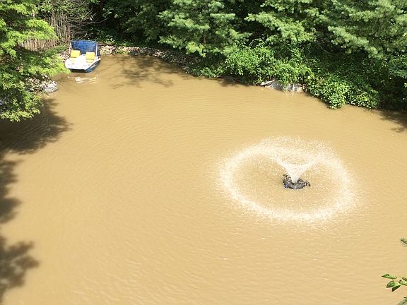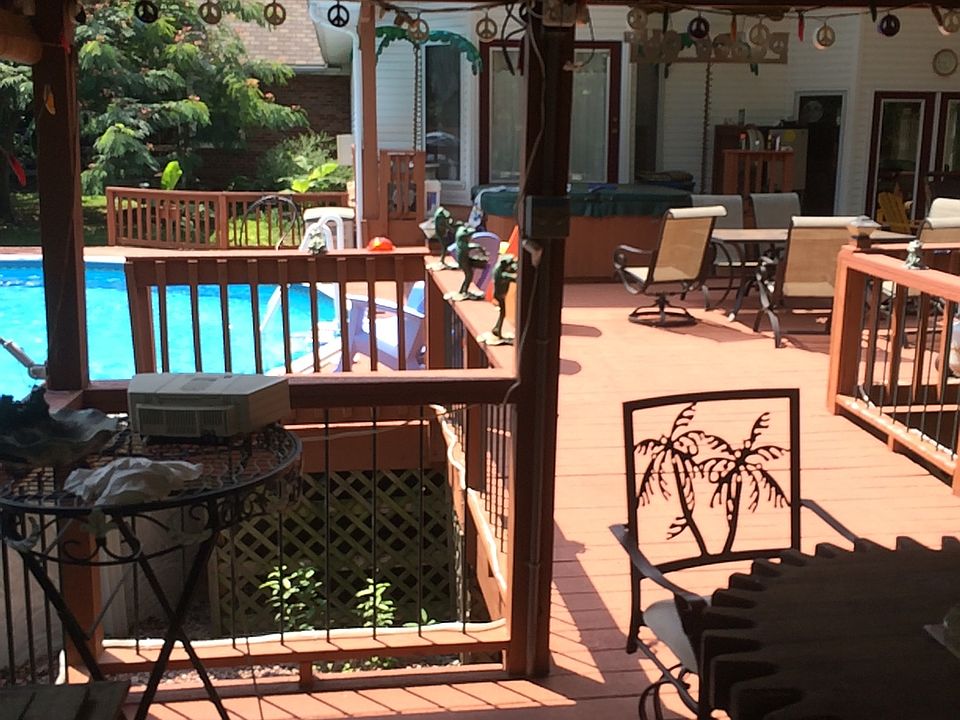 80x90 pond with 5,000 square foot deck overlooking it. 2 gazebos on property, one on the deck.