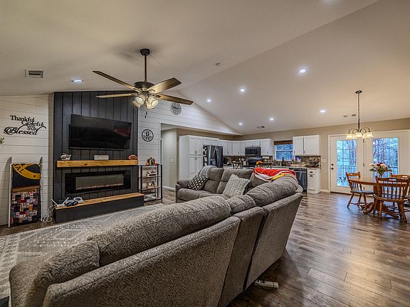 Beautiful 3 bed 2 bath ranch home built with quality craftsmanship close to town but has a country feel to it! This single family home has so much to offer starting with the large covered front patio perfect for enjoying the summer evenings! Inside you will find laminate floors throughout, completely open floor plan perfect for entertaining and don't miss out on those vaulted ceilings. The large living room has plenty of space for the whole family with beautiful ship lap accent wall and an electric fireplace. The floorplan flows nicely into the kitchen with tons of cabinets for storage, granite countertops and an island for extra seating. There is also a good space for a large dining room table. The home features a split floor plan with a nice size master bedroom, large walk in close and on suite bath that has his and her sinks, tub shower combo and two floor to ceiling storage cabinets. On the other side of the home are bedrooms two and three both are a great size along with storage closets and the main bathroom. Outside amenities include a large deck, outdoor seating area for a fire-pit or a swimming pool and a fenced in yard. This home is super efficient with spray foam throughout, energy efficient HVAC and windows. All the amenities here of a like new home just a few minutes from town but this location has a country feel to it!!