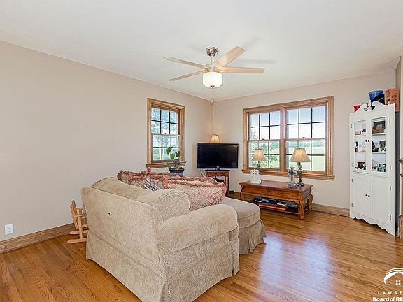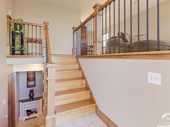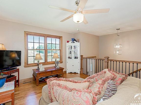 Small-town living with easy access to Lawrence or Topeka, and only a half-mile from Perry Lake for boating and fishing! This updated home sits on two lots, and features beautifully refinished hardwood floors, remodeled bathrooms with gorgeous tile work, new kitchen cabinets, stainless-steel appliances, and Silestone quartz countertops. Plus, there's new interior/exterior paint and a new 80,000 BTU, 95%-efficient furnace. The lower level offers a family room with a large fireplace and extra storage space.