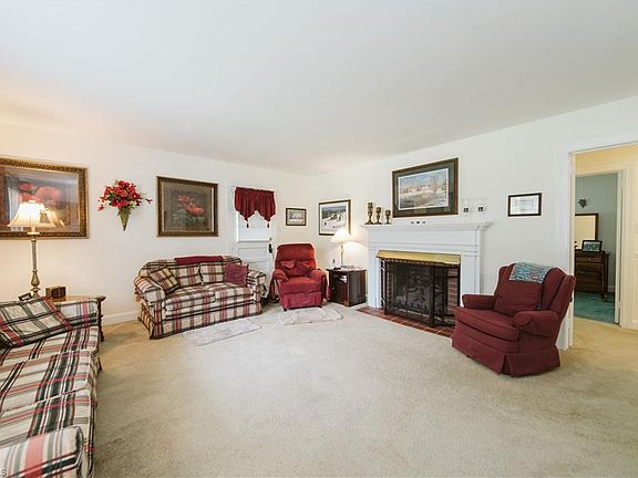 Looking for easy one-level living? Look no further! This 3 bedroom 2 bath home is situated on more than a half acre grassy lot. The charming front porch invites you into the light-filled living room featuring a gas log fireplace. Spacious eat-in kitchen plus formal dining room. Large primary bedroom with updated en suite bath, tiled walk-in shower, and extra long vanity. Plus. two secondary bedrooms of equal size and an updated hall bath. Enjoy views of the large yard from the side porch. Shed and partial basement with tons of shelving for storage and the potential to add extra living space. This adorable house with no HOA is just waiting for you to call it home. Schedule your showing today!