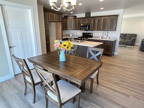 PRICE INCLUDES FENCING! New construction home by 4 MT Homes at 204 Karnnel Court. This home is move in ready and has UPGRADED spray foam insulation in the exterior walls to improve energy efficiency!! Price also includes air conditioning and topsoil. Affordable single level living with vaulted ceiling in the primary bedroom. The primary suite has a walk-in closet and private bathroom with double vanity. Enjoy your outdoor space with a front porch plus a side patio. Glass patio door in dining room gives home lots of natural light. Photos are of a similar home; actual finishes will vary. To schedule a showing please contact Valerie Blanchette at 406-885-3537 or your real estate professional today.