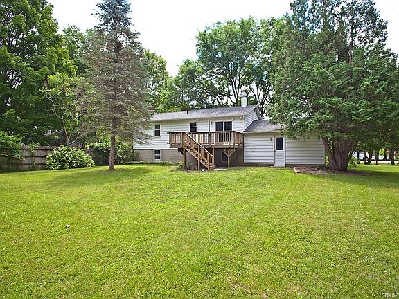 Prettiest lot in the neighborhood. This charming 4 bedroom raised ranch is surround by greenery. Private front yard and large flat backyard buffered by trees and village park. Spacious interior includes front to back living/dining rm balanced w/a bay window in the front of the house and slider to a handsome deck off the back dining room area. The two sided fireplace is the focal point of this room and provides great ambiance. The cute eat in kitchen offers plenty of counter and cabinet space. Three bedrooms and an updated bathroom complete this main level. The lower level family room has custom built ins, a 4th bedroom or office, designated space for future 2nd bath, laundry room and walkout to the spacious 2 car garage. There is also a pellet stove used to efficiently heat the house during the cold winter months. Each room has supplemental electric heat but is rarely necessary. Quiet neighborhood street, convenient location to nearby parks and the village of Chittenango. 2020-09-16