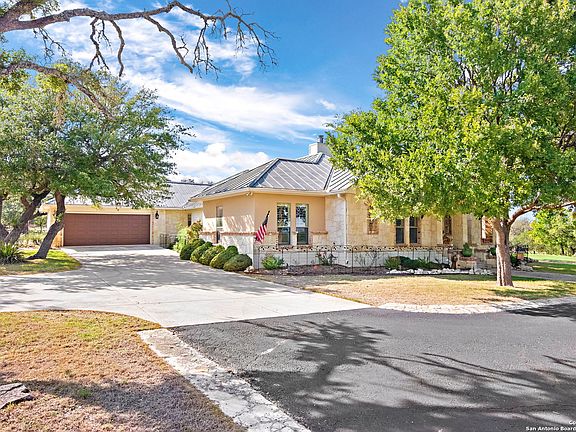 This incredible 3.43 acre estate sits in Woodridge Estates just outside the quaint town of Comfort, TX. Built in 2005 by Bob Grier and maintained immaculately ever since, this hill country custom home boasts touches of French country and native hill country inspiration put together beautifully! This freshly painted home offers 3 bedrooms each with a large walk-in closet, 2 1/2 baths, an incredible great room with wood burning limestone fireplace, and open gourmet kitchen complete with new stainless steel appliances. This spectacular home is a cook's dream, gas cooktop, double ovens and large island are perfect for entertaining your guests! Just off the kitchen is the heart of the home, a 400 square foot screened in porch complete with vaulted ceilings, fireplace, beverage cooler, and tv! This porch overlooks the incredible Texas Hill Country and the immaculately landscaped courtyard complete with a fountain to take your stress away! The entire 3.43 acres is manicured and landscaped beautifully allowing for natural beauty of the native Texas Hill Country to come out in every corner. Two beautiful cedar elms greet you at the steps as large oak mots are scattered throughout, truly providing Comfort, TX living!