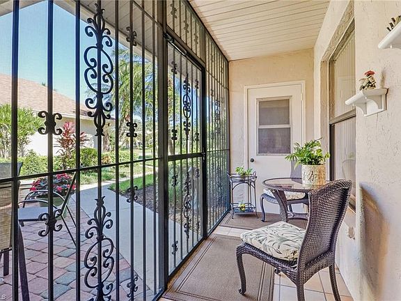 Quiet location for a Turnkey Villa in Foxfire. This property is move in ready and tastefully furnished. The unit has a great view out back of landscaping, golf course and water with plenty of room to add an outdoor patio! The front entrance of the villa features a paver patio to enjoy your morning coffee. Check out some of the upgrades, Washer/Dryer 12/2017, Water Heater 11/17, newer cabinet and fixtures in guest bath, granite counters in kitchen, refaced cabinets, stainless appliances, extra cabinets under pass thru, tile throughout and carpet in bedrooms, glassed in lanai, garage cabinets 2017. This home is coming with a Home Tech Service Contract good to Nov 2020. This is a Fantastic opportunity to own in Foxfire, a friendly and sociable golf and tennis community that boasts 27 holes of golf, only a 10 minute drive to downtown Naples and the Beach with shopping & restaurants close by. There are plenty of activities including, swimming pools, pickle ball, bocce ball, various activities at the clubhouse, driving range and putting green. At the clubhouse you'll find the grill room, dining room, fitness room, library & pro shop.