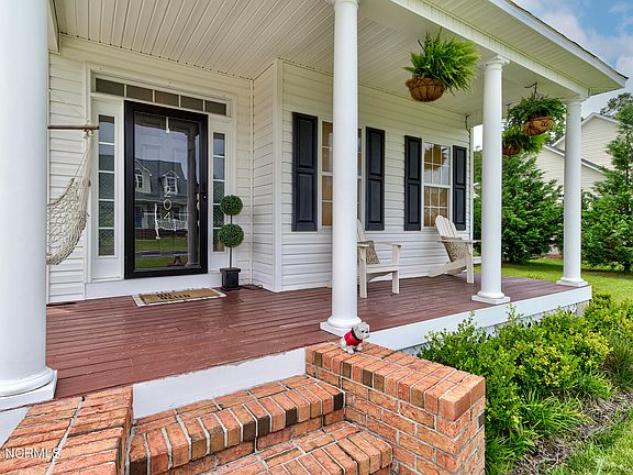 You'll fall in love with this beautiful home in the desirable Porters Neck neighborhood of Abbey Glen at Futch Creek! Southern charm greets you from the moment you step onto the rocking chair front porch. Interior features include formal dining room with millwork and tray ceiling, updated kitchen with reverse osmosis system, and adorable breakfast nook that connects to the living room with gas log fireplace. The primary suite is the perfect retreat with water views, crown molding, jetted tub and double vanity. Additional bedrooms are joined by Jack and Jill bath, and the upstairs bonus room features a designated office space. Relax on the screened in porch and enjoy the spacious fenced backyard with private deck overlooking the pond. Finished garage with epoxy floors offers ample storage space. SELLERS JUST HAD A HOME INSPECTION DONE, INSTALLED BRAND NEW DEHUMIDIFIER IN CRAWLSPACE AND HAD BOTH HVAC UNITS INSPECTED AND CERTIFIED. Don't wait to schedule your showing!