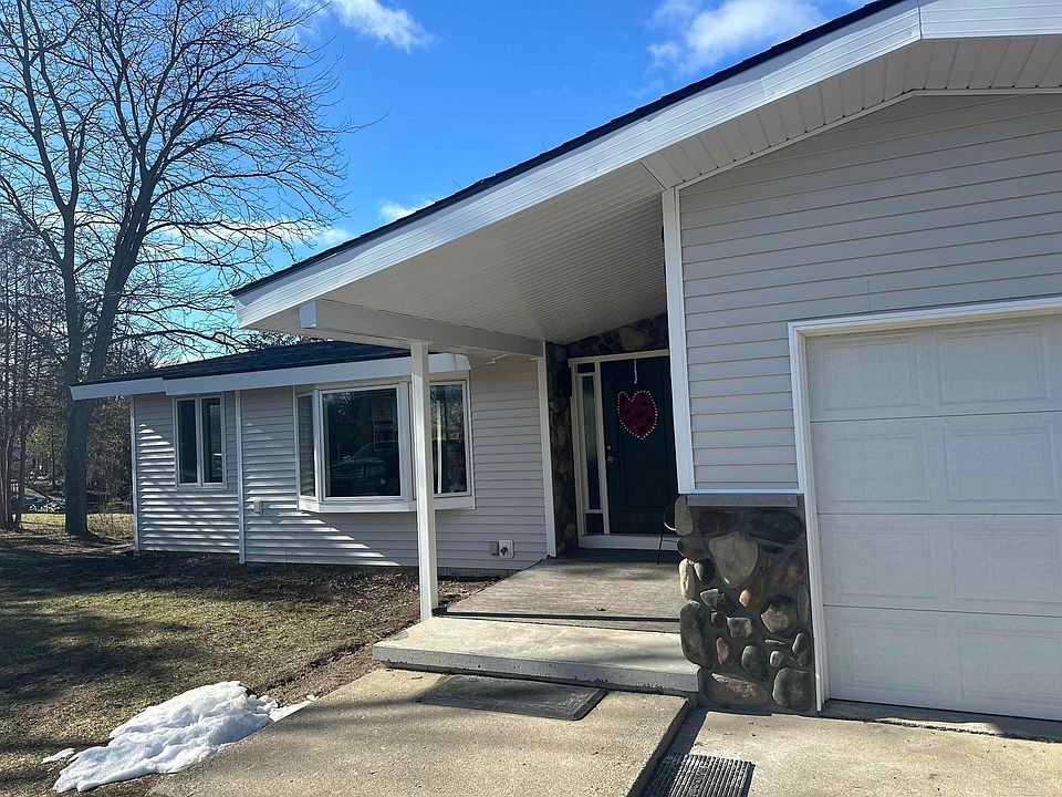 ***DOUBLE LOT!!***Your search is over! Fully updated property on 2 lots situated on all sport Ross Lake, Beaverton MI. First floor was remodeled interior and exterior with all new Marvin doors and windows. Open floor plan with vaulted ceilings throughout house. Insulated with polyurethane foam. All solid wood interior doors, walk out basement. New roof, new vinyl siding. Updated kitchen with Cambria countertop with all new stainless steel appliances including 2 ovens, 1 convection. Large spacious master bedroom includes walk in closet and walk in double-headed shower with great views of the Lake. New concrete patio and retainer wall, 16 x 24’ deck overlooking water, perfect for large gatherings. High producing apple and pear trees on property. New stone retainer wall, and dock. 2 car, fully insulated and heated garage. Gas fireplace in great room. 2 Bedrooms upstairs with possible downstair bedroom and kitchenette. Full bathroom downstairs.